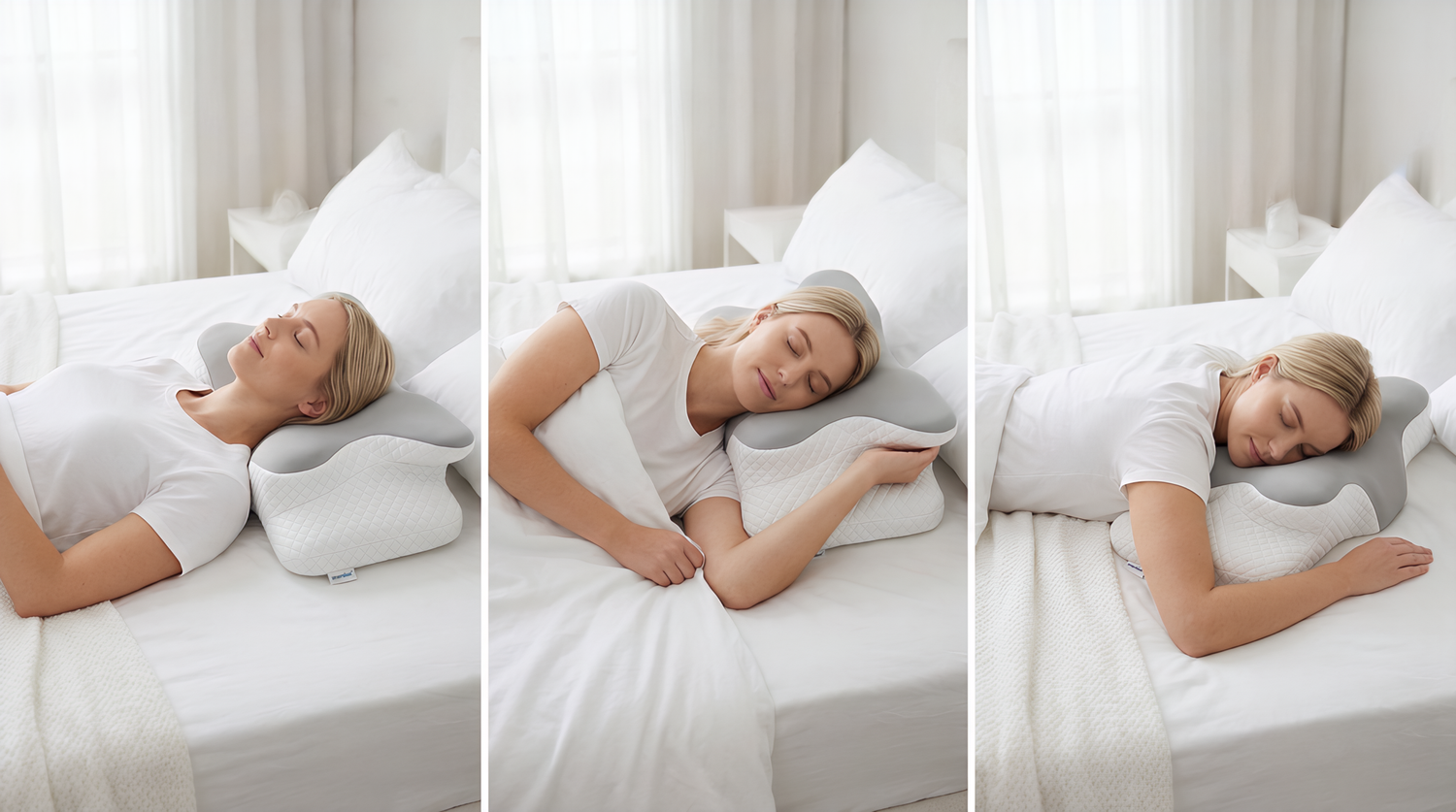 Traditional pillows force your head back, collapsing your airway and causing snoring. Our advanced butterfly design keeps your head elevated at the optimal angle, opening your airway naturally for silent, uninterrupted breathing all night long.